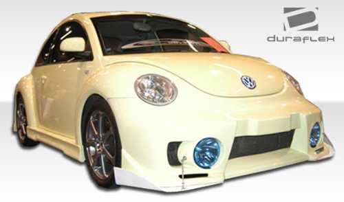 Duraflex FRP Volkswagen Beetle Evo 5 Front Bumper 1pc > 1998-2005 . Extreme Dimensions has revolutionized fiberglass marketing with their premium Duraflex aerodynamics. Duraflex is not flexible like urethane or plastic bumpers. Duraflex fiberglass combines fiberglass, plastic, and flex resins to obtain its unique features. Because of these features, Duraflex technology obtains a durability rate than the average fiberglass product, resulting in reduced shipping damages. Duraflex products come complete with a black primer finish, high quality mesh grille if applicable, generic hardware kit, and a basic guide to help you install the product. This revolutionary product allows the consumer to receive a premium fiberglass product at an affordable price. All fiberglass parts require modification, shaving, sanding, drilling, filling in order to ensure proper fitment.FeaturesHigh quality 6 oz. fiberglassProfessional prep work requiredCutting, Shaving, Filling required on FRP partsBlack primer finishHigh quality mesh grilleInstallation GuideGeneric Hardware Kit (most parts)Reduced damage rate up to 75%DISCLAIMER: Due to differences in products and design, durability test results may vary.