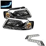 | Carpart4u Volkswagen Passat 1PC DRL LED Black Projector Headlights and LED Day Time Running Light Package